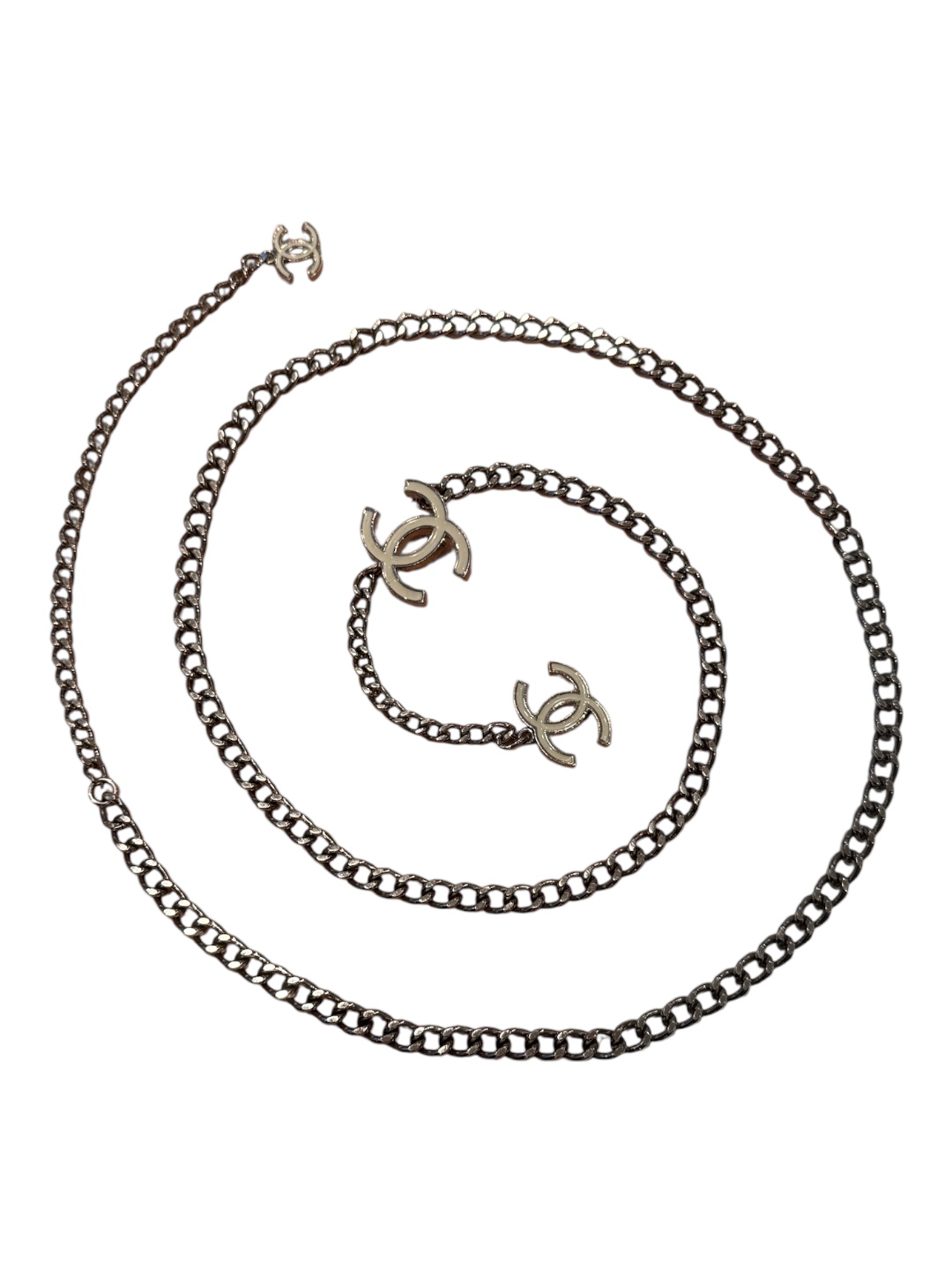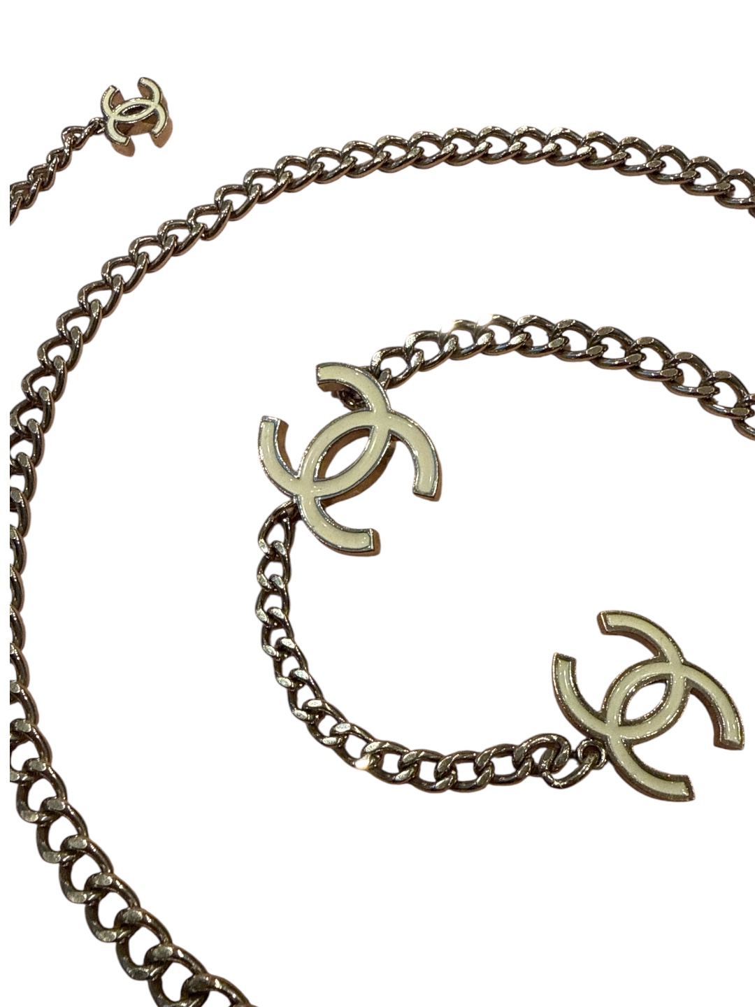 CHANEL White CC Enamel Chain Necklace Belt