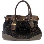 PRADA Rare Leather and Velour Brown Shoulder Bag